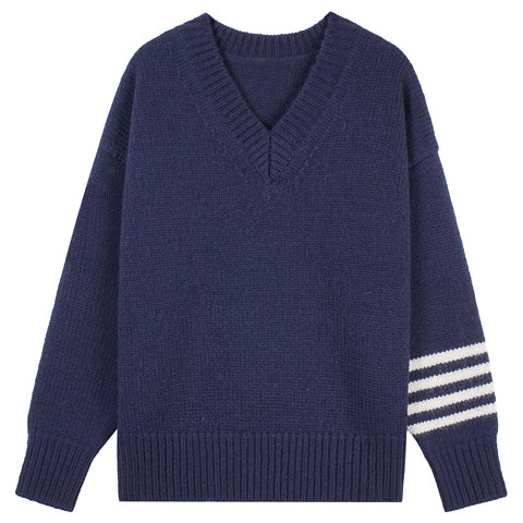 महिलाओं की 2026 शरद ऋतु सर्दियों में नवकस्टम 100% शेटलैंड ऊन v गर्दन लंबी आस्तीन स्ट्रिप मोटी गर्म फुलुवर स्वेटर स्वेटर