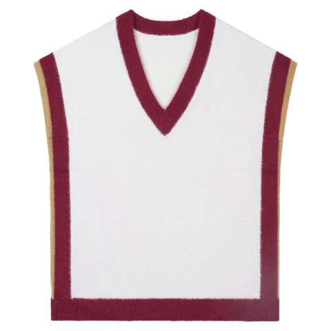 महिलाओं के कस्टम 2026 नए डिजाइन थोक शरद ऋतु 60% पॉलिएस्टर 40% ऐक्रेलिक वी गर्दन आस्तीन रहित 7gg स्ट्रिप बुनाई